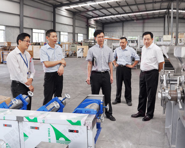 李局長一行來到公司就深入車間了解生產(chǎn)情況,在河粉機(jī)裝配車間李局長詳細(xì)詢問了河粉機(jī)的功能原理和價(jià)格,當(dāng)?shù)弥獓信坪臃蹤C(jī)占領(lǐng)了國內(nèi)主要市場時(shí)十分高興。李局長一行還在公司黨支部活動(dòng)室觀看了廣州電視臺播出的報(bào)道我司開展黨建工作的《紅棉璀璨》專題節(jié)目,隨后開展了討論,對我司黨建工作開展的有聲有色給予了高度評價(jià)。