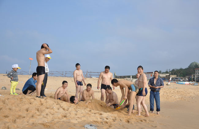 雖然到了深秋,海風(fēng)習(xí)習(xí),海水也有一絲絲涼意,參與活動的國研機械總部50多名員工紛紛下海暢游,好不愜意。不少參與活動的員工家屬也按捺不住活動開來。大家邊游泳,邊踏浪,也有的在沙灘上撿貝殼,孩子們拿著鏟子挖沙,一個個玩得不亦樂乎。
