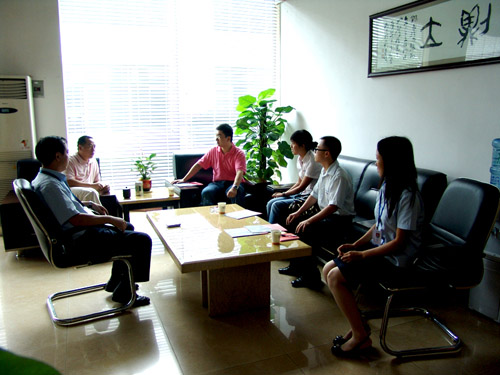 2008年7月17 日,百度(中國)有限公司華南管理委員會總監(jiān)謝方敏先生攜廣州分公司大部總監(jiān)莫莉娜一行來廣州市國研機械設(shè)備制造有限公司訪問,公司總經(jīng)理王聲位,副總經(jīng)理、黨支部書記王聲躍及公司信息部負責人進行了座談。
