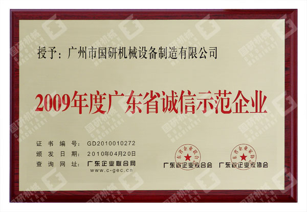 此次被評(píng)為“2009年度廣東省誠(chéng)信示范企業(yè)”,是對(duì)國(guó)研機(jī)械的一次巨大鼓舞和鞭策。國(guó)研機(jī)械將再接再厲,以“誠(chéng)信經(jīng)營(yíng)”作為企業(yè)生存之本,忠實(shí)履行企業(yè)經(jīng)濟(jì)責(zé)任與社會(huì)責(zé)任,做用戶最信賴的企業(yè),為社會(huì)提供最優(yōu)質(zhì)的產(chǎn)品與服務(wù)。